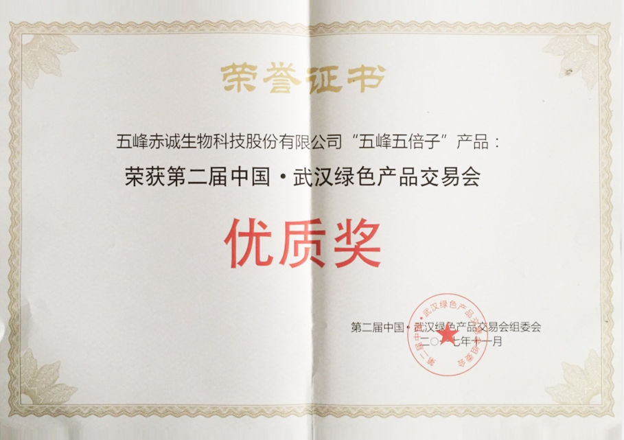 五峰五倍子 綠交會優(yōu)質獎