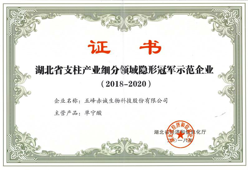 支柱產業(yè)細分領域隱形冠軍示范企業(yè)證書