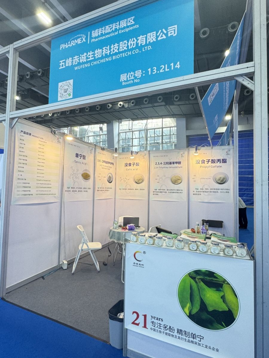 2025 API was hold at China Import and Export Fair Complex (Guangzhou) during 21th--23th May. Many Pharmarceutical company attend this exhibition.  Wufeng Chicheng as the new exhibitor and we met many new friends from many field. Mainly focus on the tannic acid, gallic acid and 3,4,5-trimethoxybenzoic acid etc in feed and pharmaceutical industry;the CDMO project and propyl gallate used as the pharmaceutical excipient.  Many new opportunities occur and we are glad to work with friends home and abrod to achieve mutual benefit and creat more value through long term partnerships.